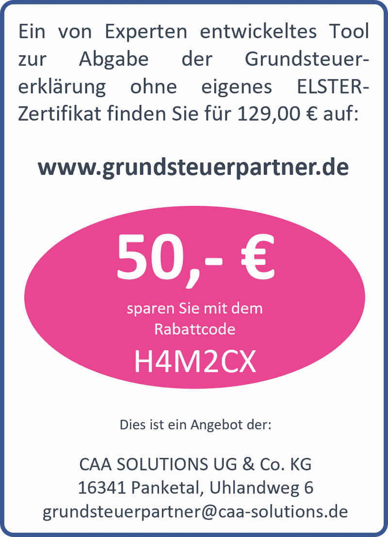 Die Experten von „CAA SOLUTIONS UG & Co. KG“ bieten eine Software zur Abgabe der Grundsteuererklärung ohne eigenes ELSTER-Zertifikat.
