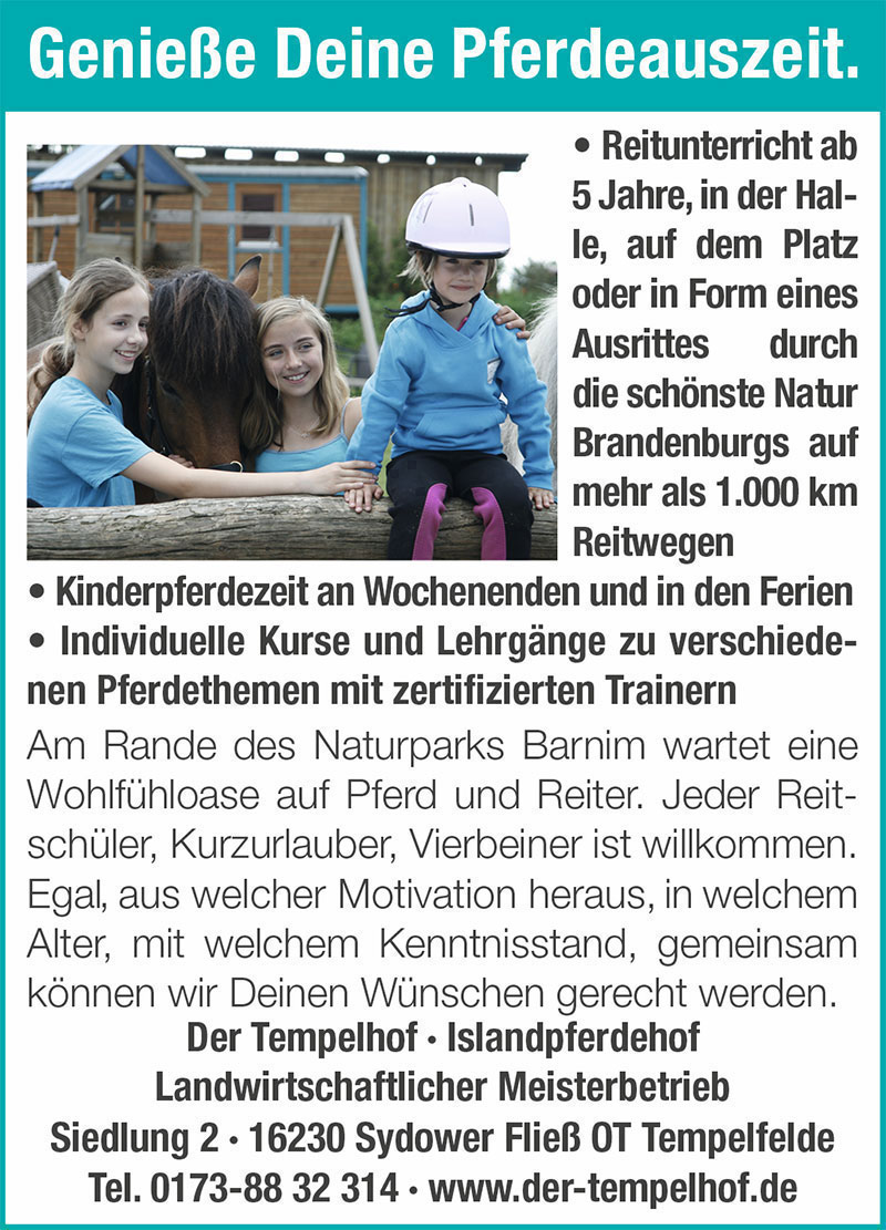 Unternehmensvorstellung: Der Tempelhof, Islandpferdehof, Landwirtschaftlicher Meisterbetrieb